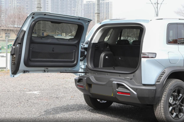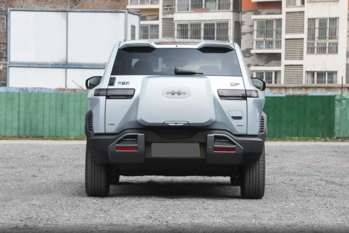 车身尾部也同样富有层次感,除了小书包之外,车顶末端还有突出的双峰扰流板,搭配上实拍图中的“星月银”车身配色,更容易营造出未来机甲的科技感。此外,方程豹钛3闪充版的后尾门也采用“冰箱门”的开启方式,同时后备箱内部的配置和储物空间也较为丰富,也能丰富用户的用车体验。